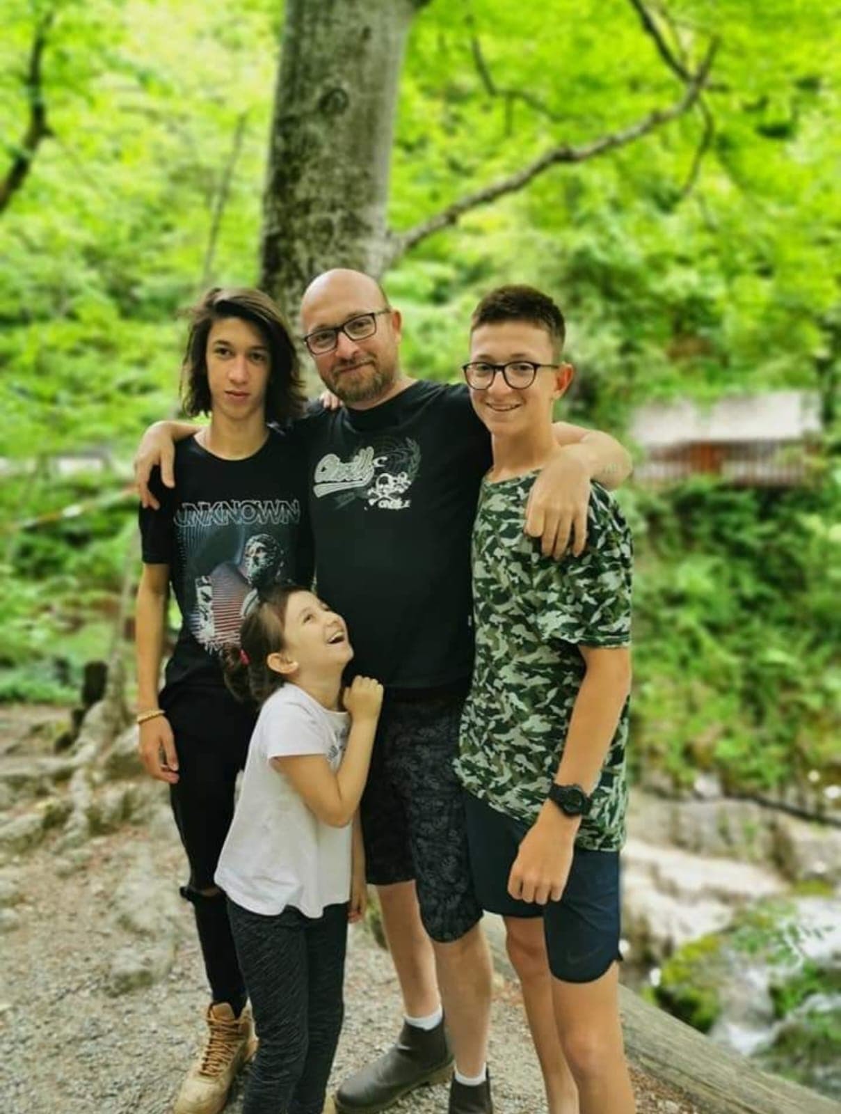 Familia Turcanu: tatăl şi cei 3 copii. Radu e în dreapta