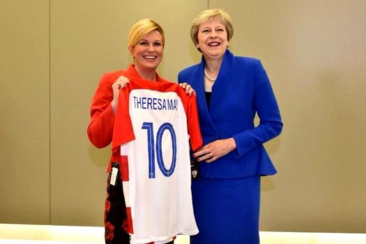 Premierul de la Londra a primit un tricou cu numărul 10 şi numele Theresa May.