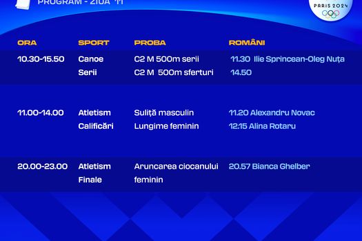 Românii vor concura în ziua a 11-a de la Paris la canoe şi la atletism.
