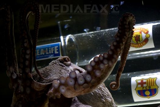 Caracatiţa, adusă din Oceanul Pacific, a pronosticat corect remiza dintre formaţiile Real Madrid şi FC Barcelona în meciul disputat la 16 aprilie, în campionatul Spaniei, precum şi victoria Realului asupra Barcei în Cupa Regelui, la 20 aprilie, la Valencia.
