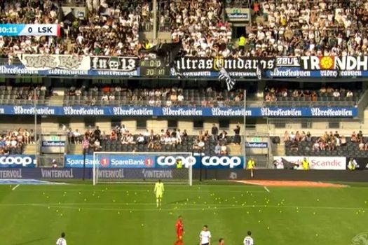 Protestele au început încă din startul jocului şi, după un bombardament de două minute cu prăjituri din peşte, arbitrul a oprit meciul şi i-a trimis pe jucători la vestiarele stadionului „Lerkendal” din Trondheim.