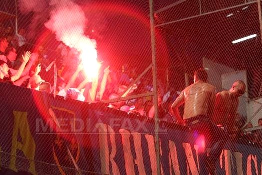 În repriza a doua fanii dinamovişti au mai afişat un banner scris în sârbă: „Ţiganii strigă ţiganii”.