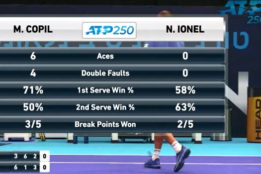 Marius Copil (31 de ani, numărul 351 ATP) l-a învins la turneul indoor de la Tel Aviv pe Nicholas David Ionel (19 ani, numărul 283 ATP), scor 3-6, 6-1, 6-4. Meciul din primul tur al calificărilor a durat două ore şi 3 minute.