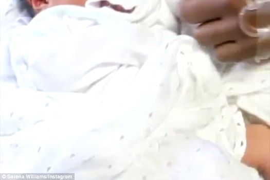 „Uite ce am primit! O fetiţă”, spune Serena la sfârşitul unui filmuleţ video, arătând spre Alexis Jr. aflată la ea în braţe. În imagini, bebeluşul este în întregime acoperit cu o păturică din care îi ies picioruşele încălţate cu botoşei. Doar faţa şi părul sunt la vedere din păturica care o acoperă.