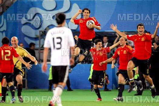 Reprezentativa Spaniei a câştigat, pentru a doua oară în istorie, Campionatul European de fotbal, după ce a învins Germania, scor 1-0 (1-0), în finala ediţiei 2008 a competiţiei, disputată, duminică, pe stadionul Ernst Happel din Viena, transmite trimisul MEDIAFAX.