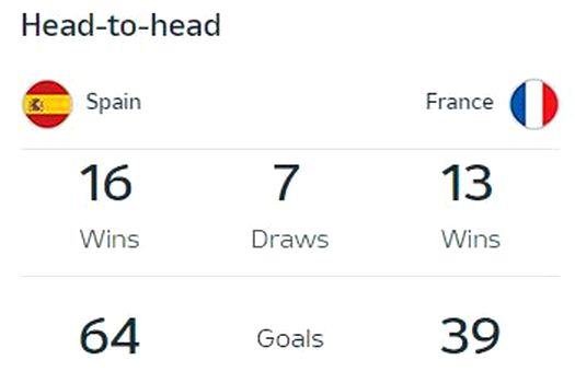 Cu doar câteva ore înainte de startul partidei, conform portalului xbets.ro, cotele la majoritatea caselor de pariuri sugerează o partidă extrem de echilibrată, cu Spania uşor favorită. Spania are cota 2,7 că va învinge în timpul regulamentar, iar Franţa – 3.05. Remiza este premiată cu 3,05.