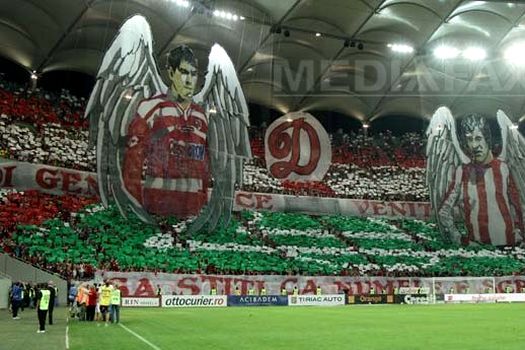 Suporterii de la Peluza Cătălin Hâldan au prezentat la acest joc o coregrafie 3D. Ei au afişat două bannere cu mesajul: „Voi, generaţii ce veniţi din urmă, să ştiţi că numele e scris de ei” şi au ridicat plăcuţe alb-roşii şi verzi care simbolizau terenul de joc, după care au înălţat deasupra lor o literă „D” imensă, stilizată, iar din gazon au înălţat imaginile imense ale lui Cătălin Hîldan şi Florea Dumitrache, cu aripi de îngeri.