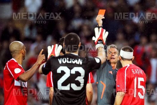 Atacantul ceh Milan Baros a fost avertizat în minutul 90+6 pentru proteste deşi se afla pe banca de rezerve.
