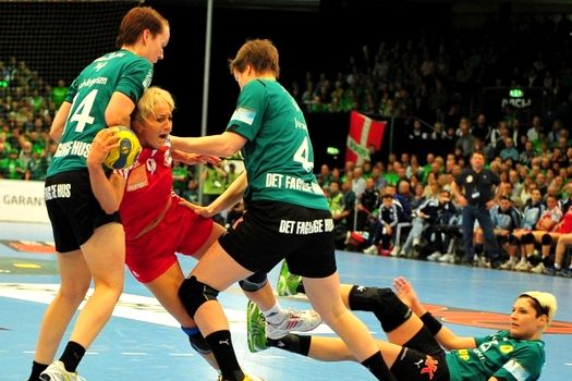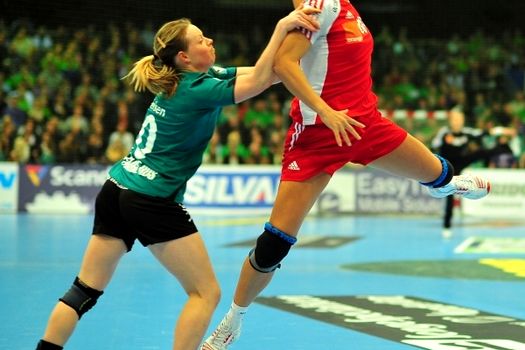 „Balul” a fost deschis de Narcisa Lecuşanu, care a marcat primul gol al meciului. Viborg a ripostat rapid, dar a avut de alergat după egalare în următoarele minute, Oltchim având iniţiativa (3-4, min. 6). Într-un vacarm de nedescris, produs nu de cântecele celor peste 4.000 de fani nordici, ci de diferite instrumente, portarul Paula Ungureanu a reuşit să blocheze două şuturi consecutive ale vedetei de la Viborg, Bojana Popovici. Apărarea prea agresivă a danezelor nu a fost iertată de arbitrii sârbi Nikolici-Stojkovici, Oltchim reuşind să rămână în avantaj, 5-6 (min. 11). Două minute mai târziu, Oltchim s-a detaşat la două goluri, 5-7, în acel moment auzindu-se şi încurajările celor aproximativ 500 de fani români. Danezele au început să protesteze la orice decizie a arbitrilor, dar şi să faulteze mult peste limita regulamentului. Pivotul Anja Althaus i-a aplicat un cot în ficat Narcisei Lecuşanu, care a fost nevoită să părăsească terenul (min. 15, 7-7). Jocul de „şah” a continuat şi la nivelul antrenorilor, care au făcut tot timpul modificări pe linia de nouă metri, rotind jucătoarele. Viborg a reuşit să revină la timonă, 9-7 (min. 18), profitând de câteva atacuri ratate de echipa lui Radu Voina, dar şi de laxitatea din apărare de pe flancul drept.