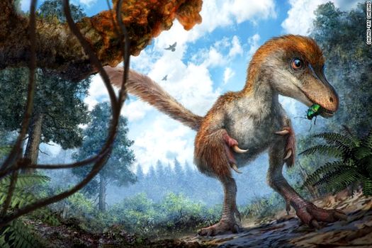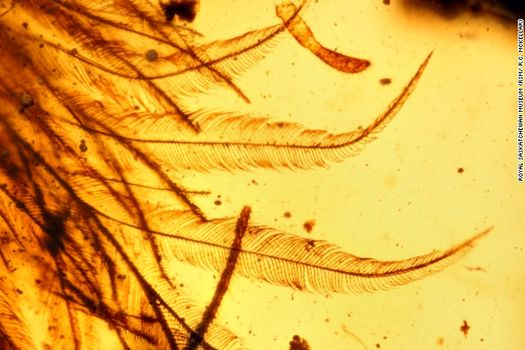 Coelurosauriani erau o specie de dinozaurii asemănătoare cu păsările, acoperiţi de pene. Dinozaurul a cărei coadă a fost descoperită în chihlimbar avea probabil dimensiunea unei vrăbii.