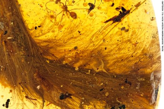 Este prima data când un schelet de dinozaur mumificat a fost descoperit. Partea prinsă în chihlimbar face parte din secţiunea de la coadă, şi aparţine unui coelurosaurian.