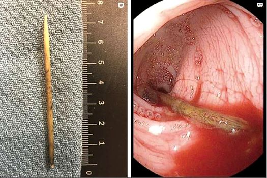 Trei spitale au avut probleme în diagnosticarea afecţiunii, deşi au folosit aparatură sofisticată. În cele din urmă, în intestinul gros al tânărului a fost descoperită o scobitoare. Adolescentul a înghiţit-o când a mâncat un sandviş.
