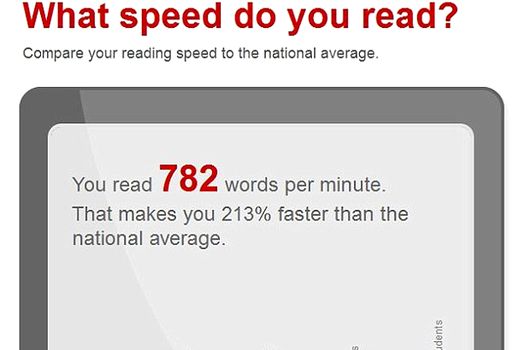 Staples.com îţi pune la dispoziţie o pagină de citit, după care trebuie să răspunzi la mai multe întrebări. După notarea răspunsurilor, programul îţi poate spune care este viteza ta de citit şi îţi poate oferi spre comparare media vitezei la elevi, studenţi sau profesori. În plus, poţi compara rezultatul tău cu recordul în materie, care este de 4.700 de cuvinte pe minut.