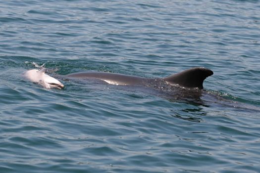 Un an mai târziu, Joan Gonzalo a descoperit un grup de delfini care înconjurau un pui în vârstă de aproximativ 2-3 luni care înota cu dificultate. Acesta avea urme albicioase pe corp, posibil de la expunerea la pesticide sau poluarea cu metale grele.