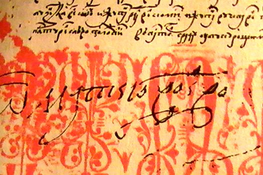 Semnătura lui Matei Basarab de pe un hrisov, din 16 martie 1638, prin care voievodul, domn al Ţării Româneşti,
