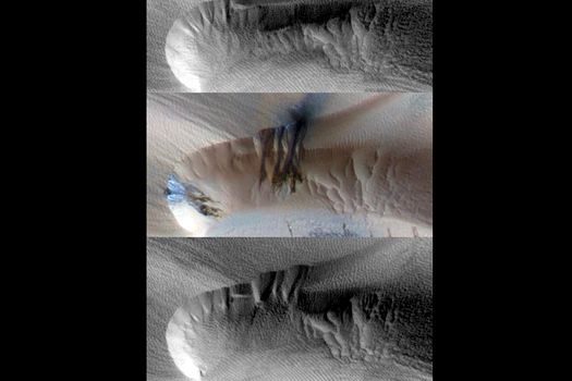 Savanţii americani au fost uimiţi să descopere că urmele avalanşelor din trecut erau şterse aproape în întregime într-un singur an marţian (echivalentul a doi ani tereştri).