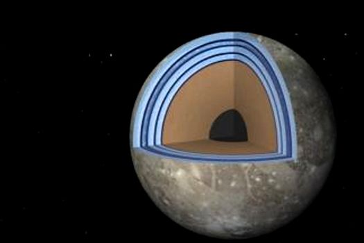 Ganymede este unul dintre cei cinci sateliţi din sistemul solar despre care se crede că au oceane ascunse sub suprafeţele de gheaţă. Europa şi Callisto gravitează în jurul planetei gazoase Jupiter, în timp ce Titan şi Enceladus gravitează în jurul planetei Saturn.