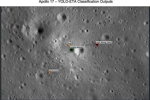 Echipa a antrenat un model de învățare automată numit YOLO-ETA pentru a detecta artefacte lunare.