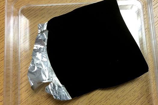 Materialul a fost realizat pe foi de aluminiu, care pot fi văzute în fotografiile realizate de companie. În timp ce folia este încreţită şi neuniformă, suprafaţa acoperită de „Vantablack” apare complet netedă, datorită proprietăţilor sale de a absorbi lumina.
