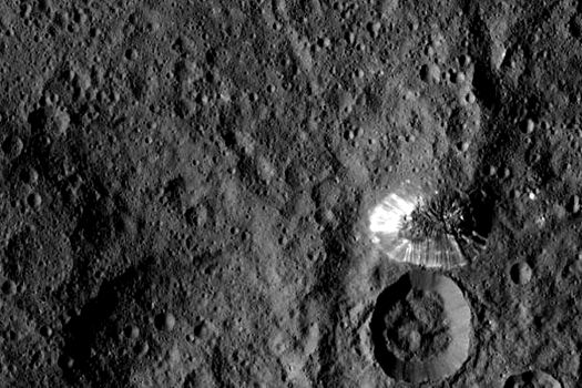 Muntele surprins de Dawn, cu o altitudine de 6.437 de metri, e doar una dintre imaginile care aprind imaginaţia internauţilor. Alte imagini de pe Ceres înfăţişează cratere şi diverse puncte excepţional de strălucitoare, a căror existenţă nu a putut fi explicată deocamdată de oamenii de ştiinţă.