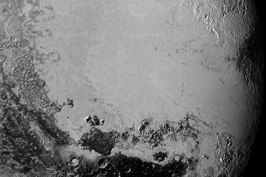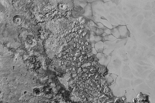 „Suprafaţa lui Pluto este absolut la fel de complexă ca aceea a lui Marte”, a spus Jeff Moore, cercetător la NASA. „Acei munţi amestecaţi în mod aleatoriu ar putea fi blocuri uriaşe de gheaţă din apă dură care plutesc pe un depozit vast, mai dens, dar mai moale, de azot îngheţat, în regiunea denumită până acum informal Sputnik Planum”.