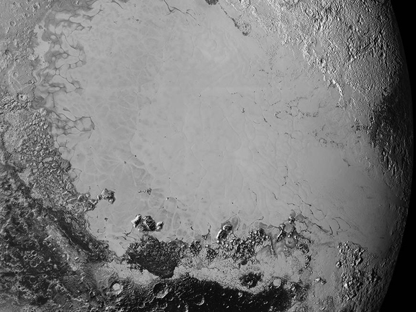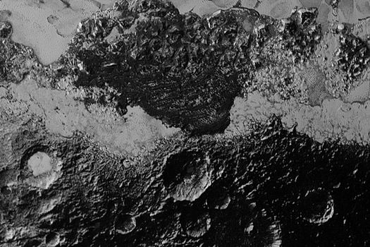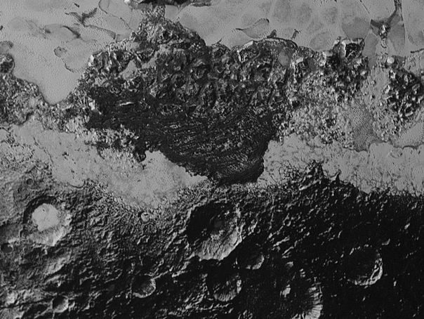 Una dintre imagini prezintă regiunea întunecată Cthulhu în apropiere de o câmpie îngheţată, denumită Sputnik Planum – aceste nume sunt informale, până când vor fi aprobate de Uniunea Astronomică Internaţională.