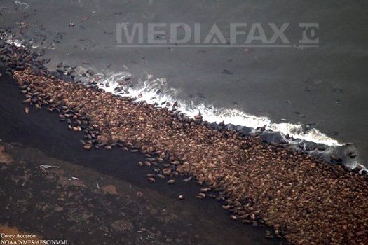 În jur de 35.000 de morse au fost fotografiate în weekend pe o plajă din Point Lay, la aproximativ 500 de kilometri sud-vest de Barrow, relatează BBC News.