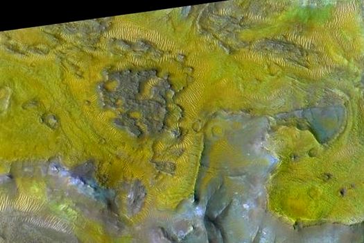 Depozitele de carbonaţi de pe Marte au mărimea unui stadion de fotbal şi sunt vizibili în fotografiile făcute de Mars Reconnaissance Orbiter.