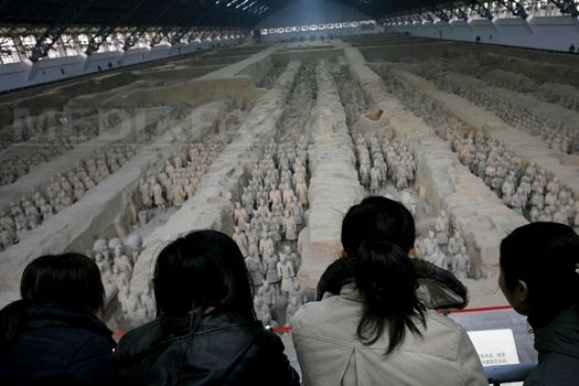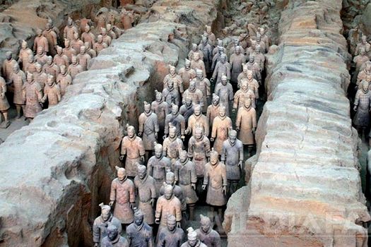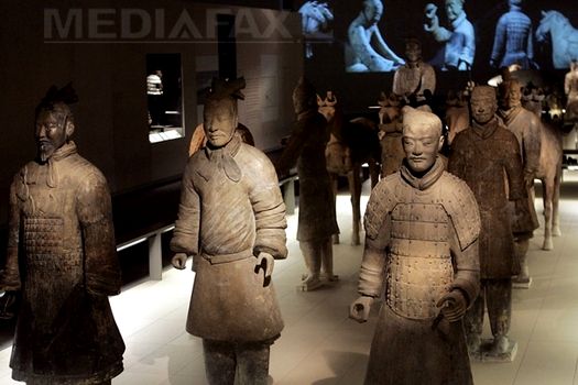 Sculpturile, care datează de aproape două milenii, au fost descoperite în 1974 în locul în care este înmormântat împăratul Qin Shi Huang, în provincia Shaanxi. Săbiile, suliţele, arcurile şi săgeţile soldaţilor erau reale, pentru că slujba lor era să-l protejeze pe împărat în viaţa de apoi. Oamenii de ştiinţă au găsit în jur de 8.000 de soldaţi în trei locuri de înmormântare care s-ar putea întinde pe 56 de kilometri pătraţi, o zonă mult mai mare decât se credea iniţial.