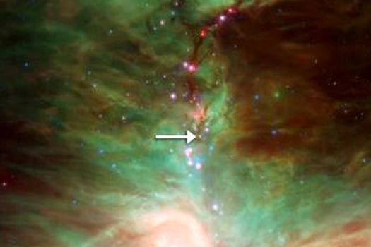 Telescopul Spitzer a reperat ploaia de cristale în jurul unei stele îndepărtate, o protostea, numită HOPS-68, din constelaţia Orion.
