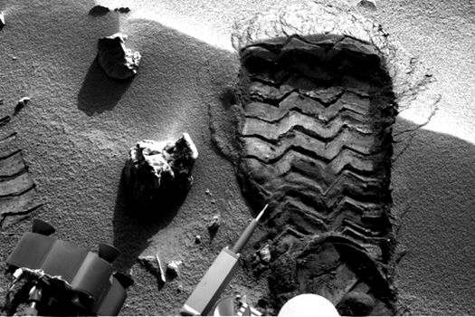 La o primă privire, fotografia pare să ateste faptul că omul a păşit pentru prima dată pe suprafaţa planetei Marte, pentru că urma lăsată de Curiosity seamănă destul de mult cu urma lăsată de Neil Armstrong atunci când a păşit pentru prima dată pe Lună, pe 20 iulie 1969, informează dailymail.co.uk.
