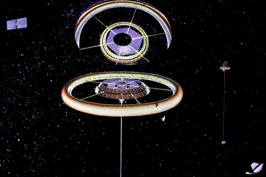 Alte opere ale artiştilor NASA se bazează pe un concept care a fost prezentat în clasicul film ştiinţifico-fantastic „2001: Odiseea Spaţială/ 2001: A Space Oddisey” (1968) al lui Stanley Kubrick. Conceptul consta în folosirea forţei centrifuge induse de rotaţia unei structuri în formă de cerc, pentru obţinerea unui efect gravitaţional.