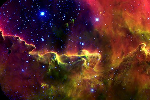 Imaginea dezvăluie în detaliu caracteristicile fantasticului nor de gaze şi praf din jurul acestei pepiniere de stele.