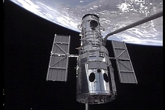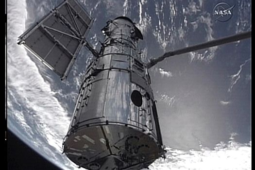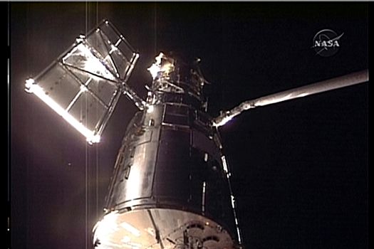 "Hubble a ajuns la bord", a declarat Scott Altman, comandantul Atlantis, care a manevrat naveta până la doar un metru distanţă de telescopul Hubble, ce are o lungime de 13 metri şi o greutate de 11 tone (echivalentul unui autobuz).