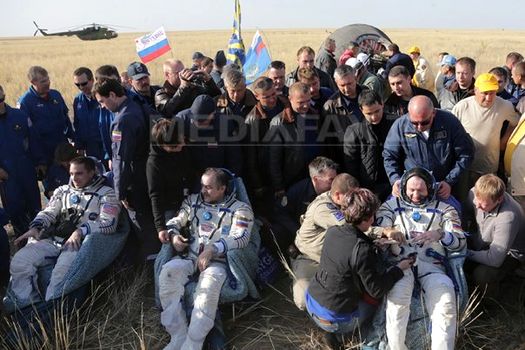 Ruşii Pavel Vinogradov şi Alexandr Misurkin şi americanul Chris Cassidy au aterizat la ora prevăzută, 08.58 (02.58 GMT), în stepele din Kazahstan, o fostă republică sovietică din Asia Centrală în care Rusia exploatează cosmodromul Baikonur.