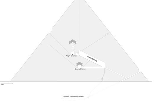 Cele patru canale înguste din interiorul piramidei de peste 4.500 de ani au stârnit curiozitatea arheologilor încă de când au fost descoperite, în 1872. Canalele au o lăţime de doar 20 de centimetri, ceea ce face imposibilă explorarea umană. Mulţi experţi sunt de părere că acestea au fost construite pentru ca spiritul faraonului să poată ieşi din piramidă.