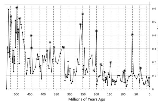 Oamenii de ştiinţă de la Universitatea din Kansas şi Institutul Smithsonian din Washington sunt aproape siguri că există o extincţie a vieţii la fiecare 27 de milioane de ani.