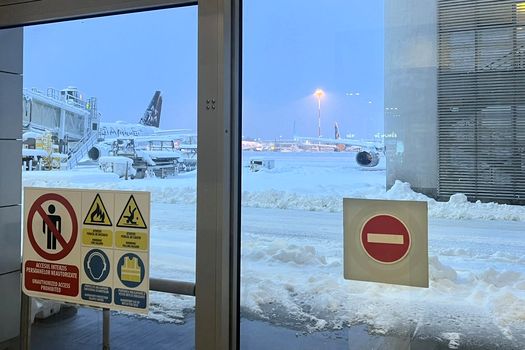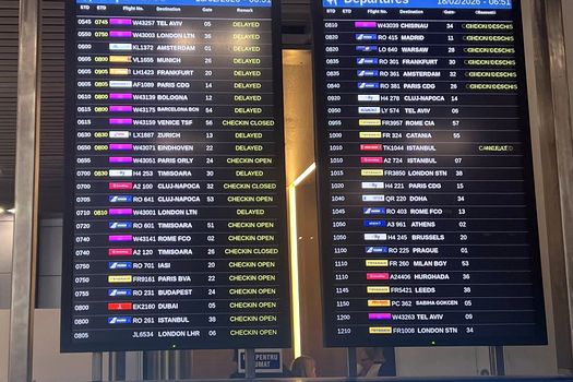 O parte a delegației de presă, care urma să-l însoțească pe președinte, se află încă de dimineață blocată pe aeroportul Otopeni, de unde nu decolează – deocamdată – nicio aeronavă, din cauza vremii nefavorabile și ninsorii abundente.