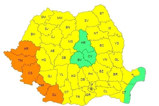 Potrivit avertizării cod portocaliu, valabilă marţi, în judeţele Arad, Timiş, Caraş-Severin, Mehedinţi şi Dolj, canicula se va intensifica, disconfortul termic va fi accentuat, iar indicele temperatură-umezeală (ITU) va atinge pragul critic de 80 de unităţi. Temperaturile maxime, deosebit de ridicate pentru această dată, se vor situa în jurul a 37 de grade, iar minimele vor fi de 18…20 de grade, valori uşor mai mari, în jurul a 23 de grade, urmând a se înregistra în Dealurile de Vest.