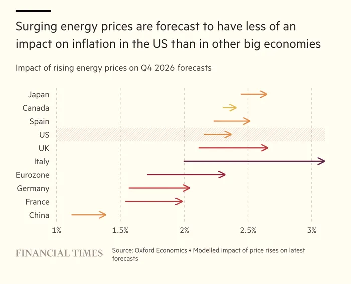 Economiile europene și asiatice sunt cel mai mult afectate de criza petrolului, generată de războiul din Iran. Consumatorii americani vor simți probleme la pompă, dar SUA este un exportator net de energie, spre deosebire de aliații săi europeni, arată Financial Times.