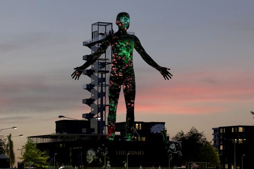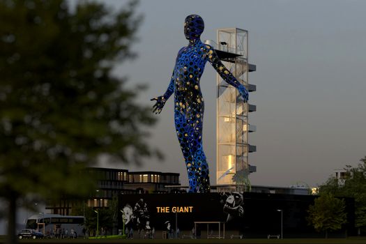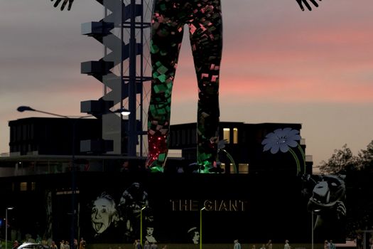 Structura , numită simplu The Giant, este cât un bloc de 10 etaje şi are o piele formată din milioane de pixeli LED.