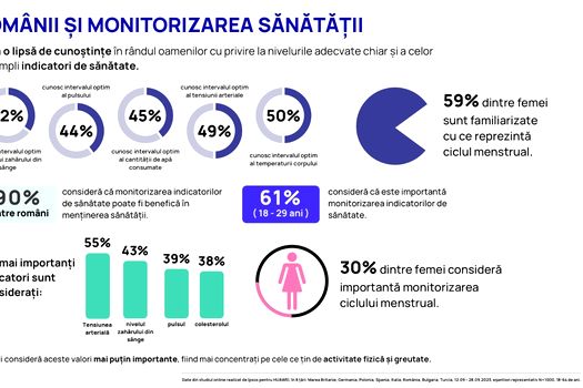 Un studiu comandat de HUAWEI la nivel european, care explorează conştientizarea, atitudinile şi comportamentele legate de sănătate, relevă existenţa unor cunoştinţe limitate ale consumatorilor în privinţa conduitei de sănătate şi scoate în evidenţă potenţialul neexploatat al tehnologiilor inteligente de sănătate.