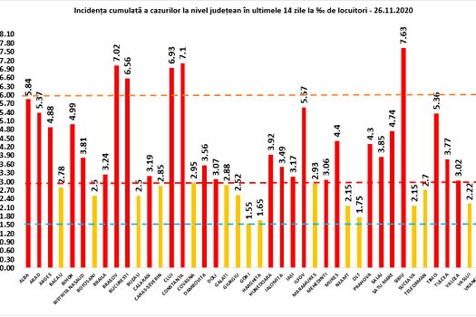 Până astăzi, 26 noiembrie, pe teritoriul României, au fost confirmate 449.349 de cazuri de persoane infectate cu noul coronavirus (COVID – 19).