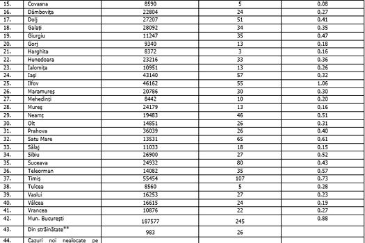 Până astăzi, 2 septembrie, pe teritoriul României au fost confirmate 1.101.678 de cazuri de persoane infectate cu noul coronavirus (COVID – 19).