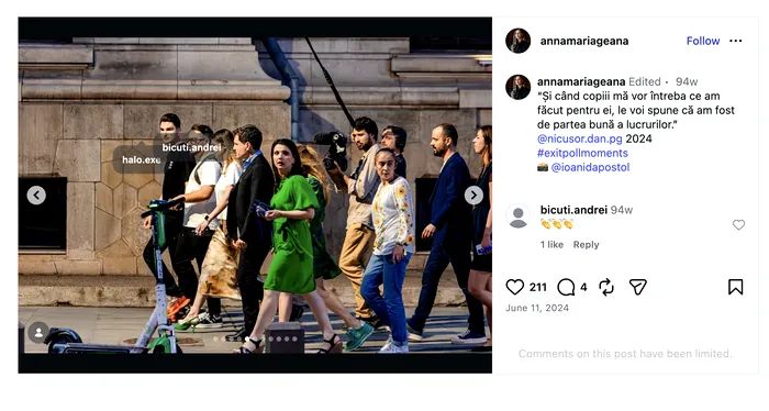 În fotografii, alături de Nicușor Dan, apar Diana Iancu/ fostă Lazăr, Mihai Cojocaru, Andrei Bicuți, consiliera Ana Maria Geană și Matei Păun, la momentul exit pollurilor din 9 iunie 2024, când actualul președinte a câștigat al doilea mandat de primar al Bucureștiului.