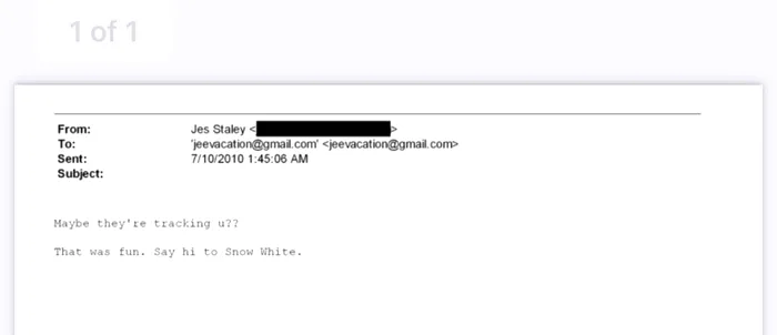 Problema descoperită de jurnaliștii britanici este că schimbul de replici dintre femeie și Epstein a avut loc cu trei săptămâni înainte ca fostul director executiv al Barclays, Jes Staley, să discute cu Epstein tot pe aceeași temă: Albă ca Zăpada.