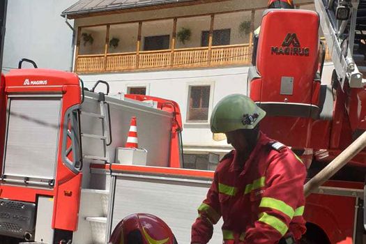 La locul intervenţiei se aşteaptă echipajul care va decoperta acoperişul.
