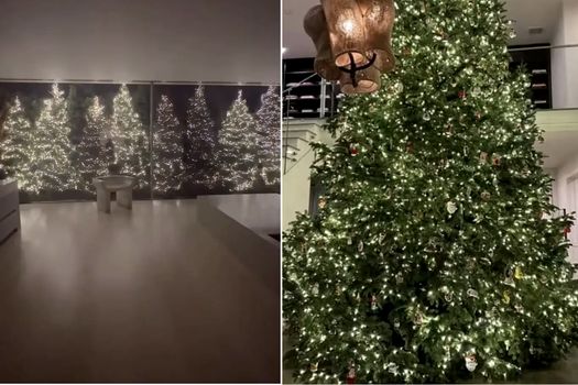 Sora ei mai mare, Kim Kardashian a decorat un rând de brazi amplasaţi în faţa locuinţei sale, având o privelişte demnă de o noapte magică de Crăciun.