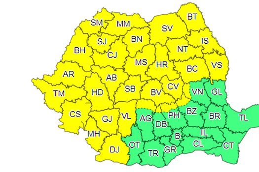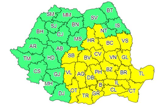 Notă: astfel de fenomene se vor semnala pe arii restrânse şi în restul teritoriului.