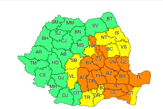 Administraţia Naţională de Meteorologie (ANM) a emis o atenţionare Cod portocaliu valabilă de miercuri, ora 14.00 până joi, ora 06.00.